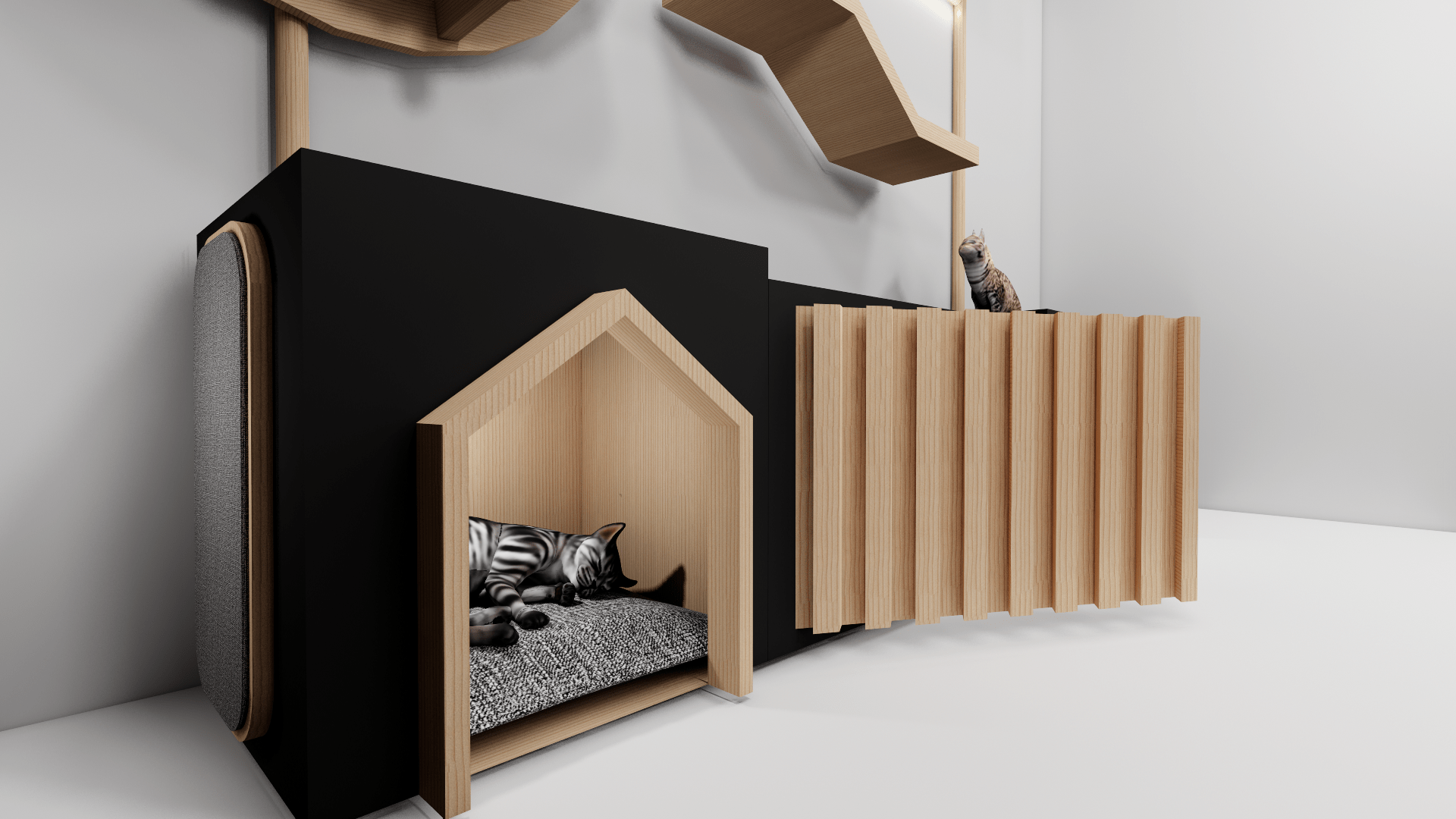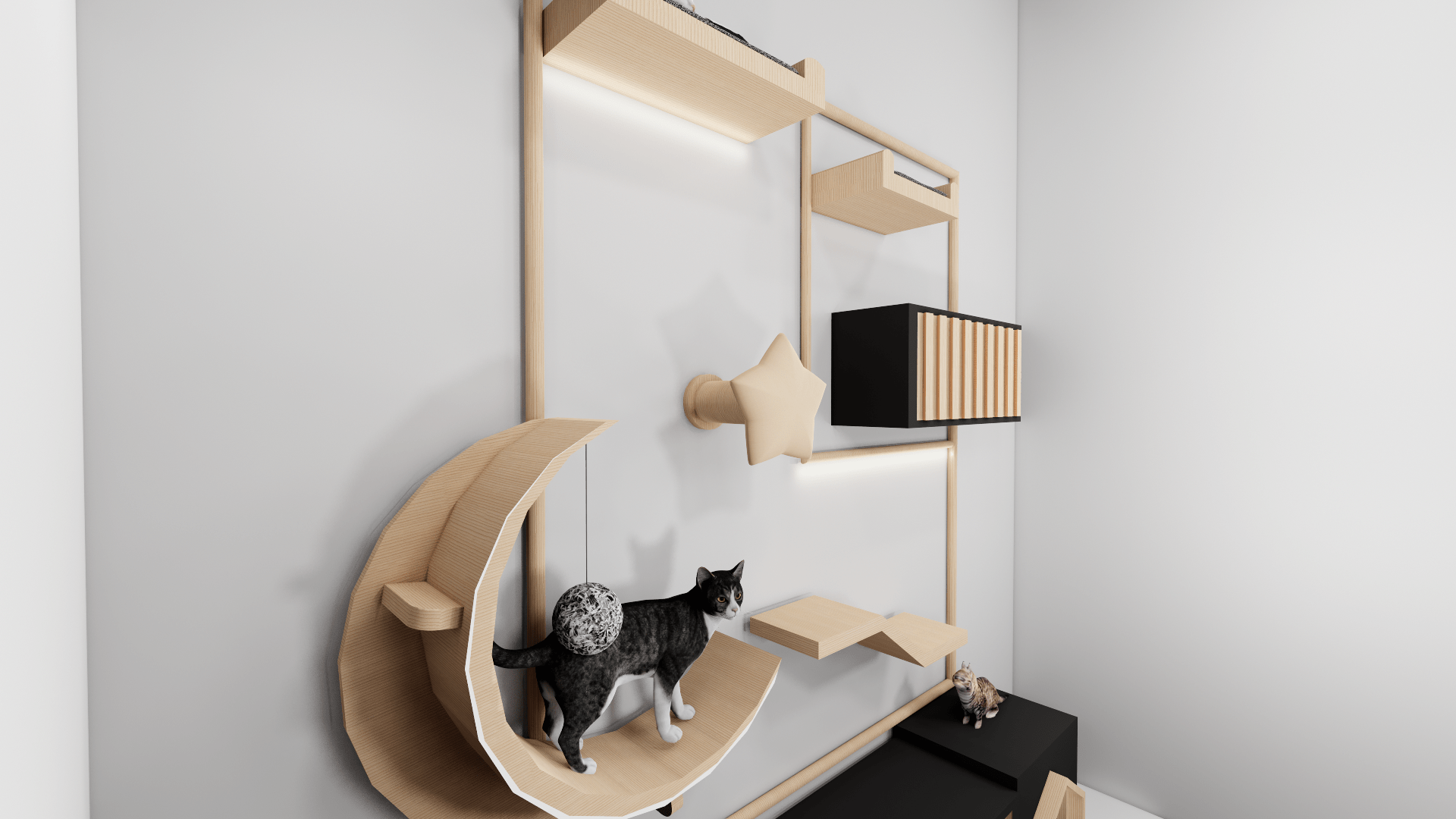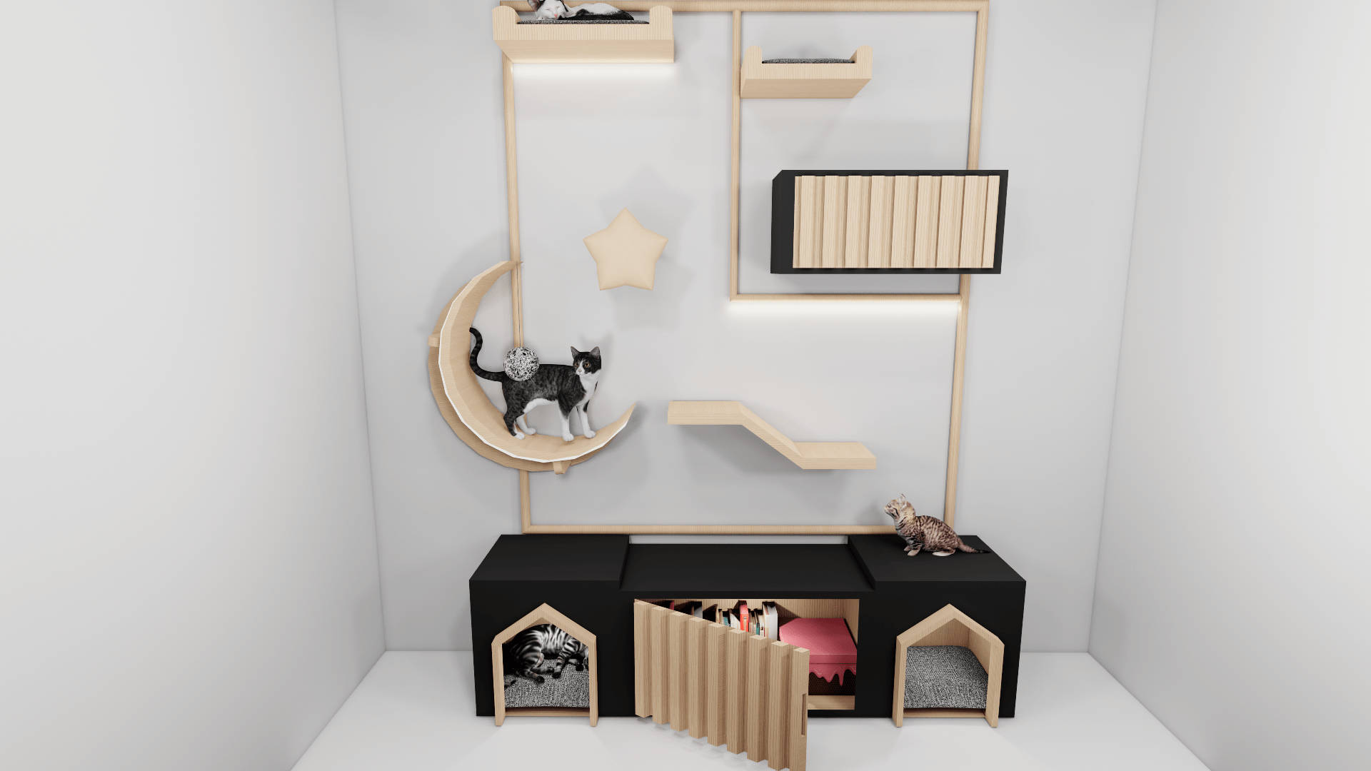 FURNITURE YANG DISEDIAKAN UNTUK SARANA BERMAIN KUCING SEHINGGA TIDAK MEMBUAT RUANG MENJADI BERANTAKAN